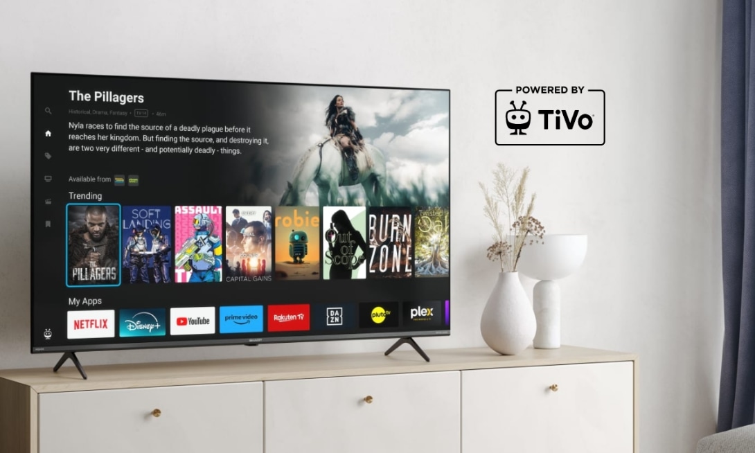 Découvrez les Smart TVs SHARP équipées de TiVo pour des recommandations personnalisées, le contrôle vocal et une liste de visionnage unifiée sur toutes vos applications de streaming préférées.