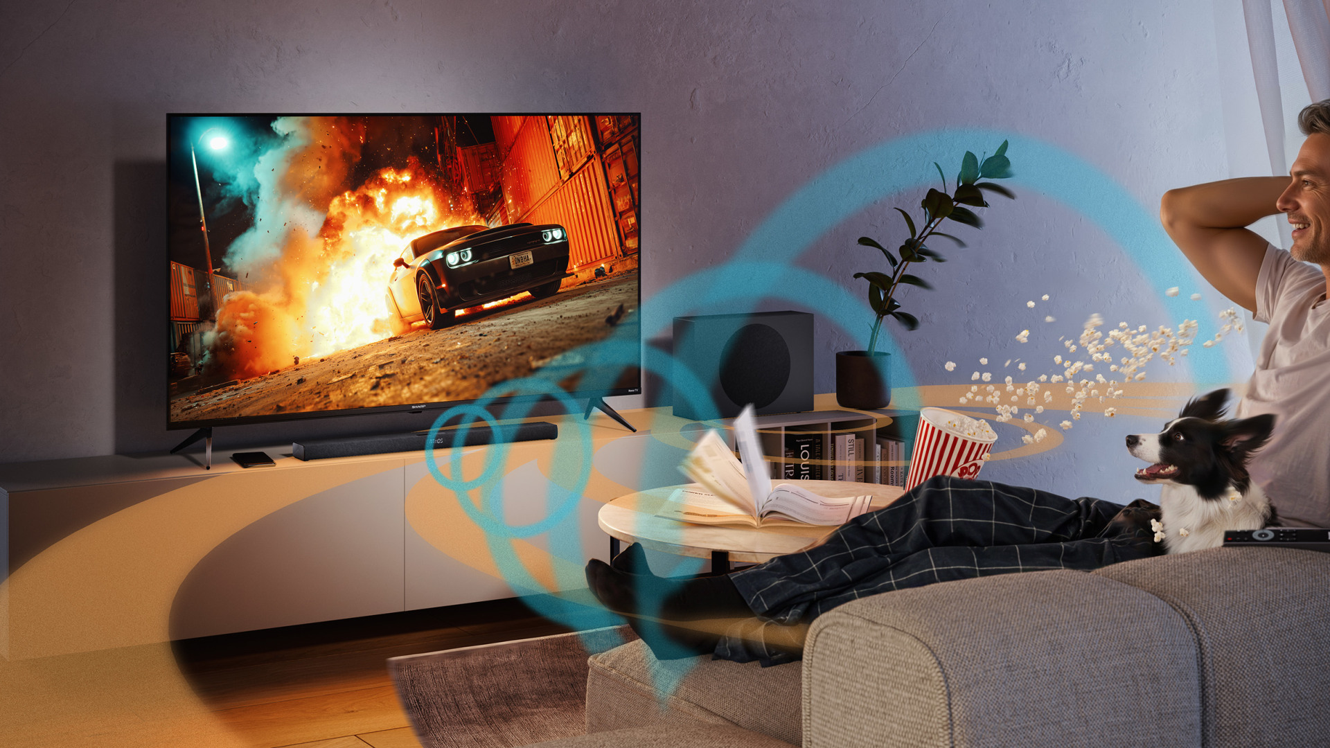 Les enceintes surround sans fil AQUOS fonctionnent avec votre téléviseur SHARP compatible, pour une expérience audio immersive Dolby Atmos® encore plus intense.