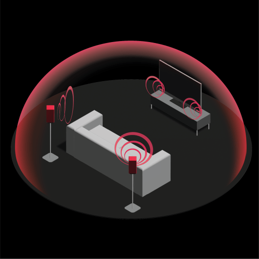 Pour un son surround immersif et complet, y compris Dolby Atmos®, les haut-parleurs arrière AQUOS Wireless Surround fonctionnent avec les haut-parleurs de votre téléviseur SHARP AWS compatible pour créer un système de 4.0 canaux. Cette configuration offre un placement précis des “objets” audio dans l’espace 3D autour de vous.